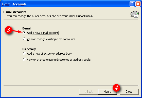 | 3)Put a dot next to 'Add a new e-mail account'. | ||||